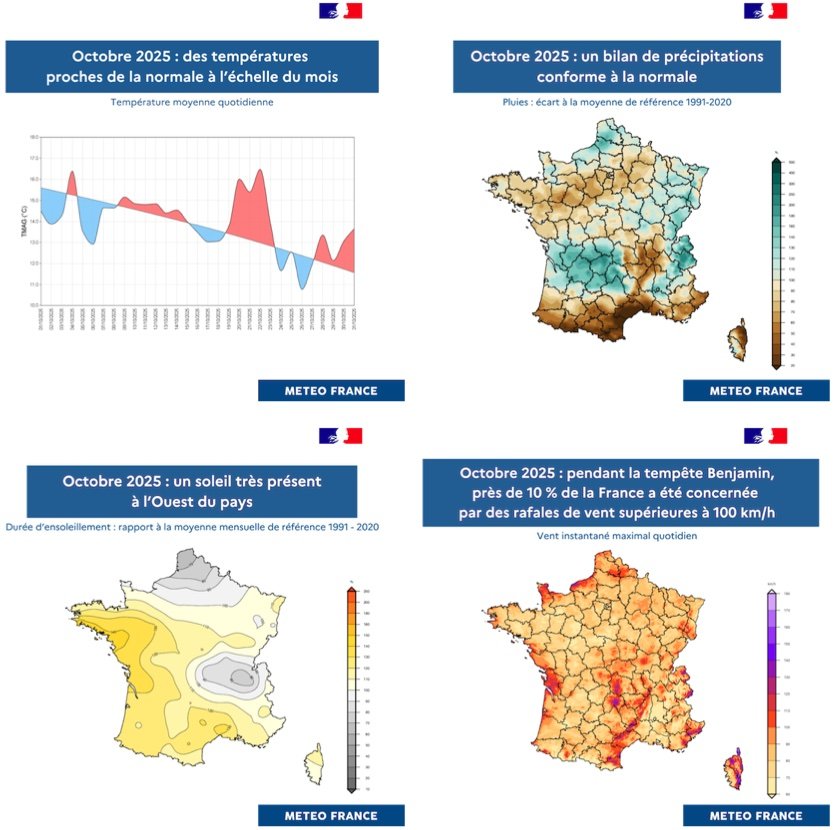 À l’échelle du pays et du mois, les températures sont proches des normales (+0.2 °C), comme au mois de septembre.