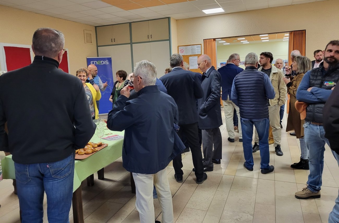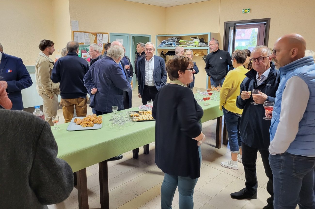 Présentation qui été faite sur le parvis de la salle des fêtes car venait de se terminer la déambulation inauguratrice de la traversée entièrement rénovée de la départementale traversant le village. Ainsi les personnalités qui participaient à cette première inauguration ont participer également à la deuxième !