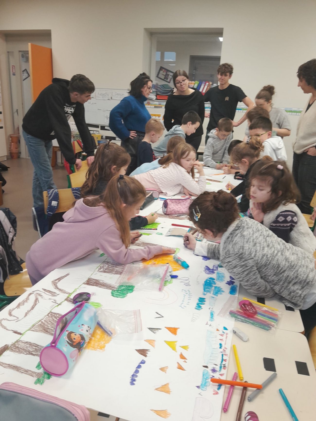 A l’issue de la séance, les élèves ravis par cette autre façon d’apprendre, ont réalisé une fresque représentant la forêt et leurs habitants.