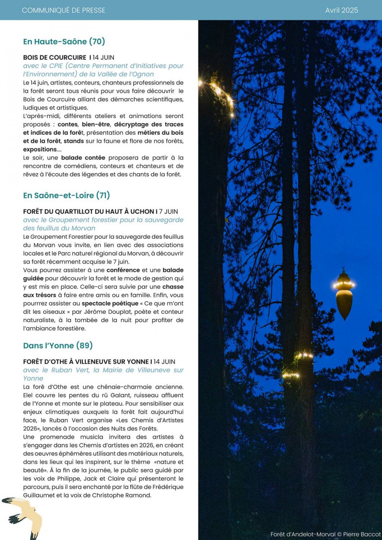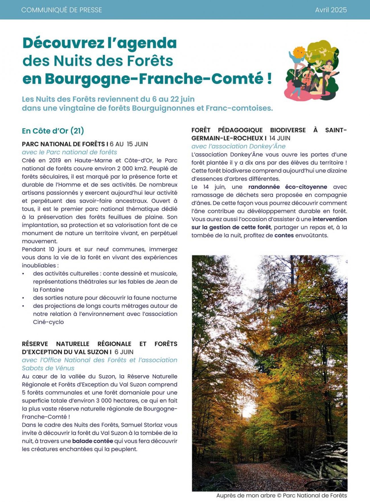 Événement d’envergure nationale et à destination du grand public, les Nuits des Forêts reviennent du 6 au 22 juin dans plus de 250 forêts partout en France métropolitaine, en Guyane, à la Réunion et pour la première fois en Martinique et Nouvelle-Calédonie. Petit tour de la programmation en Bourgogne -Franche-Comté !