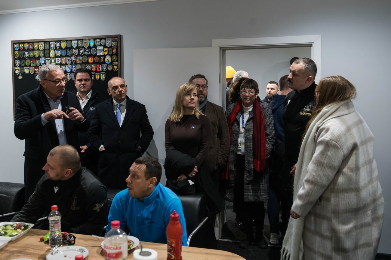 Le jeudi 27 novembre 2025, à Oujhorod, en Ukraine, le groupe de travail Ukraine du Comité des Régions visite un centre social accueillant des vétérans blessés et des soldats en permission Vladyslav Musiienko / Union européenne)