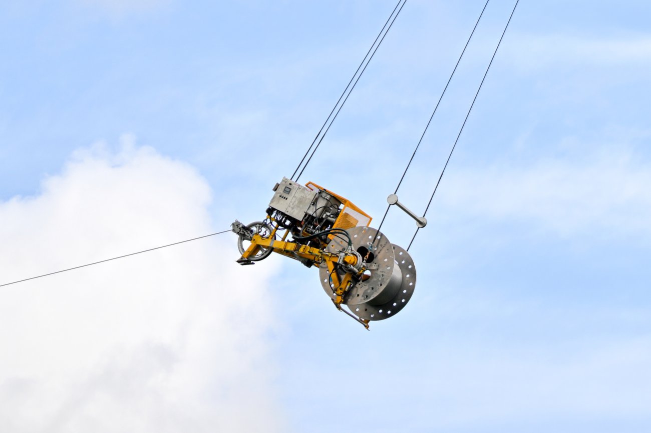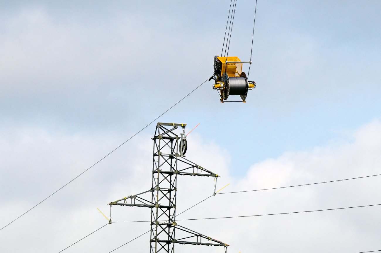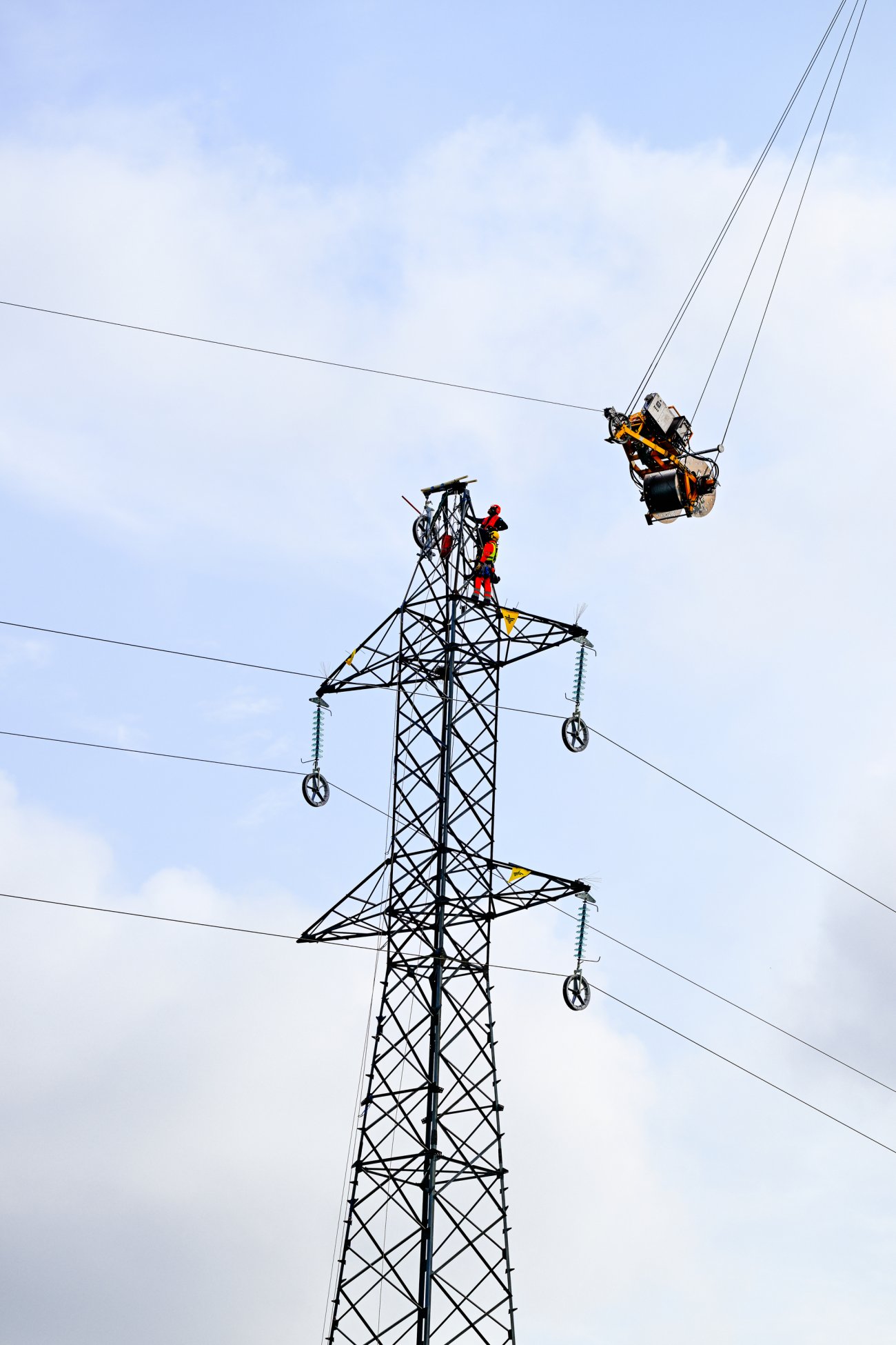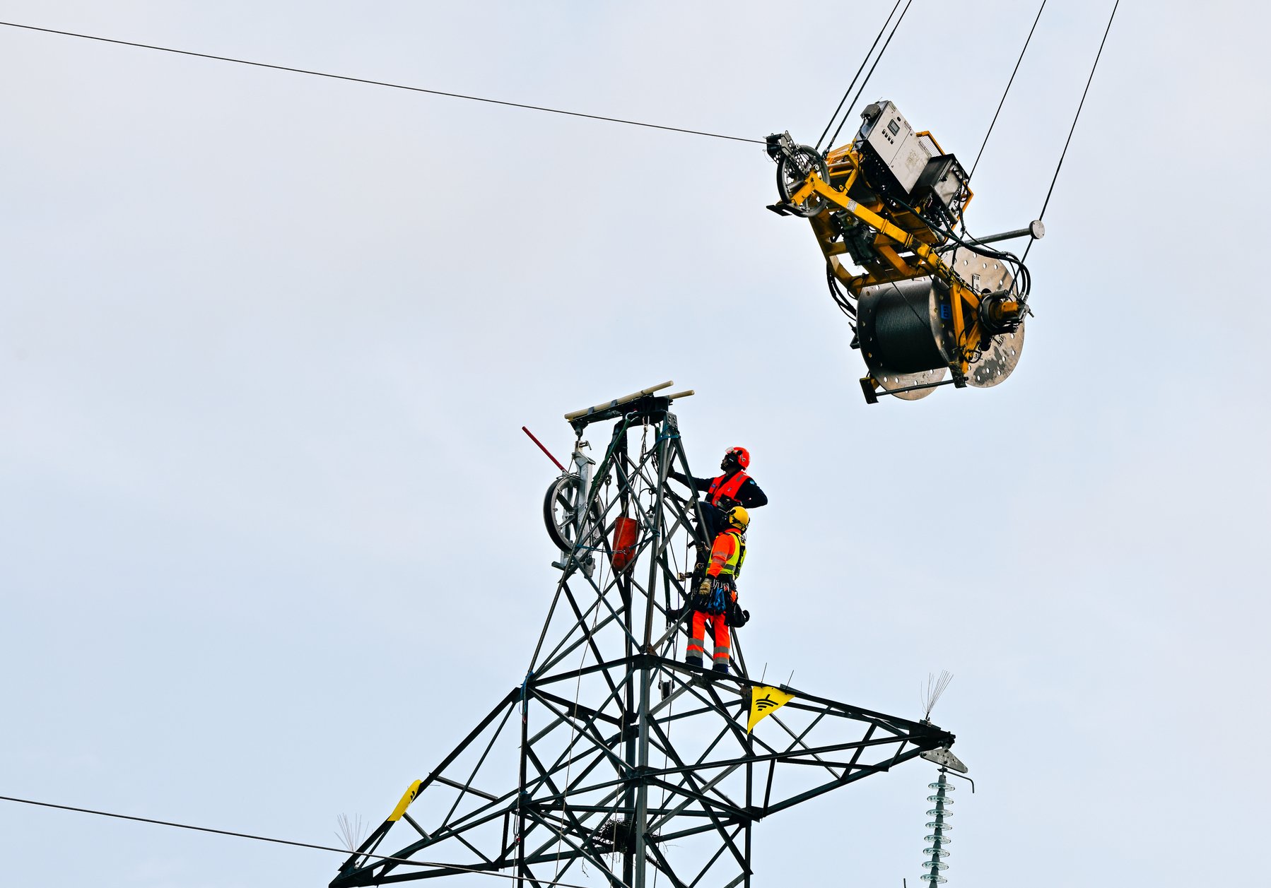 installer les nouveaux câbles situés à 30 mètres de hauteur, RTE
