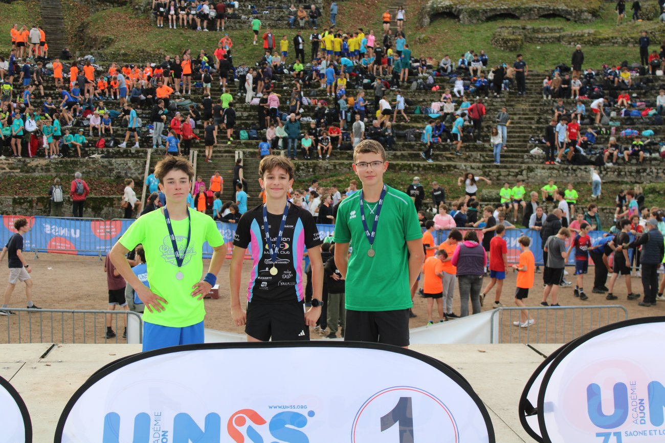 Ce mercredi 12 novembre au théâtre romain d'Autun a eu lieu la compétition de cross départemental UNSS de 1800 élèves venant des collèges et lycées de Saône-et-Loire. Objectif : un titre de champion départemental de cross UNSS et décrocher une place au cross académique qui se déroulera à Dijon début décembre 2025. Il y a eu 7 départs, avec :