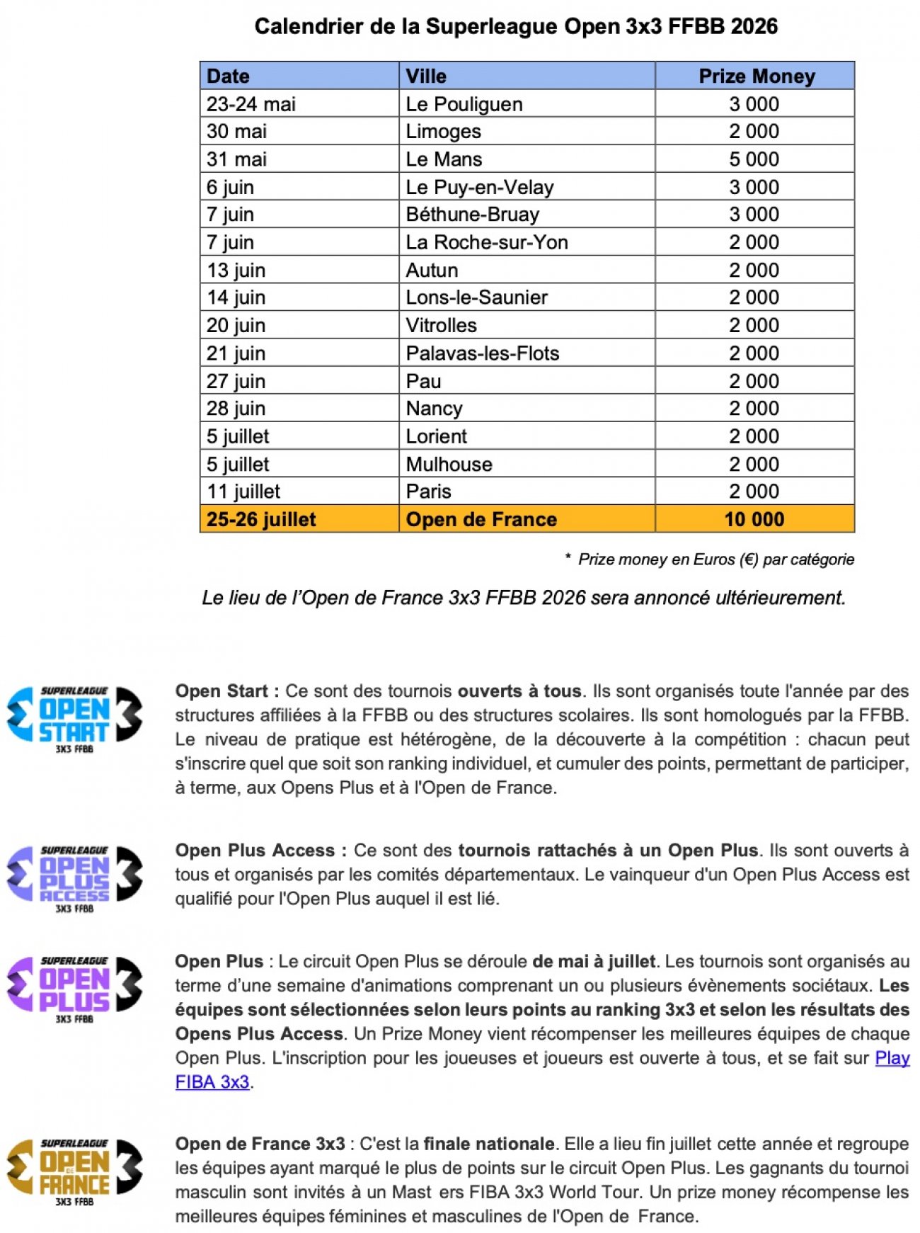 la Superleague Open 3x3 FFBB sera de 96 000 €
