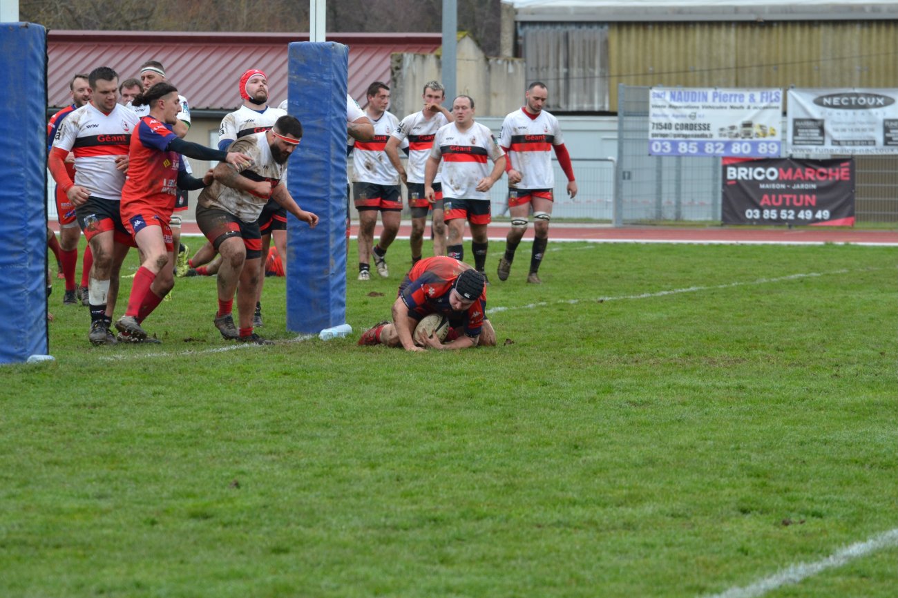 Les Autunois commencent fort avec un essai à la 4ᵉ minute de Clément POUILLARD sur une poussée collective.