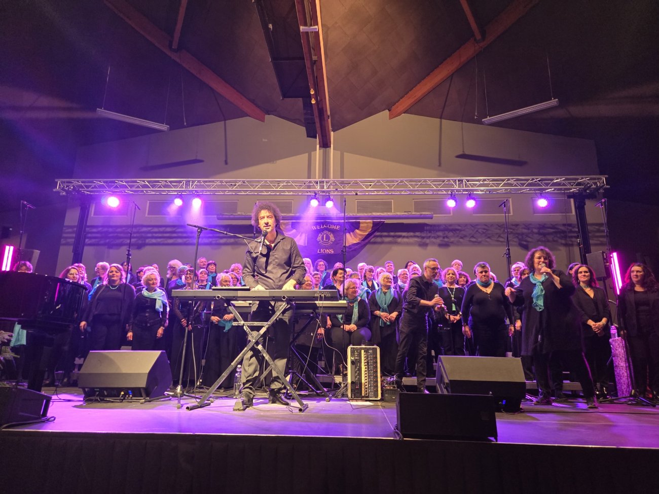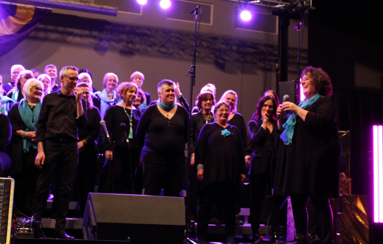 Et enfin le dernier grand moment de la journée est arrivé avec les 100 choristes gospel de Sing It Out Chalon qui se sont produits sur scène. Sébastien Vaivran, pianiste organiste et chef de chœur de la chorale Sing It Out Chalon, a su mener le récital de chants et, avec la complicité de ses choristes, a réussi à emballer le public et à les faire participer.