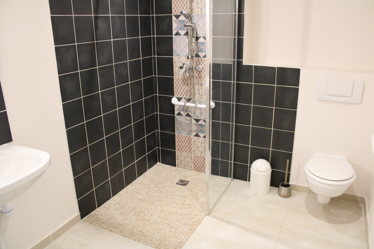 L'immeuble comporte 3 étages tous desservis par un ascenseur, chaque appartement est adapté avec des douches plates, a sa propre cuisine et bénéficie de la climatisation.