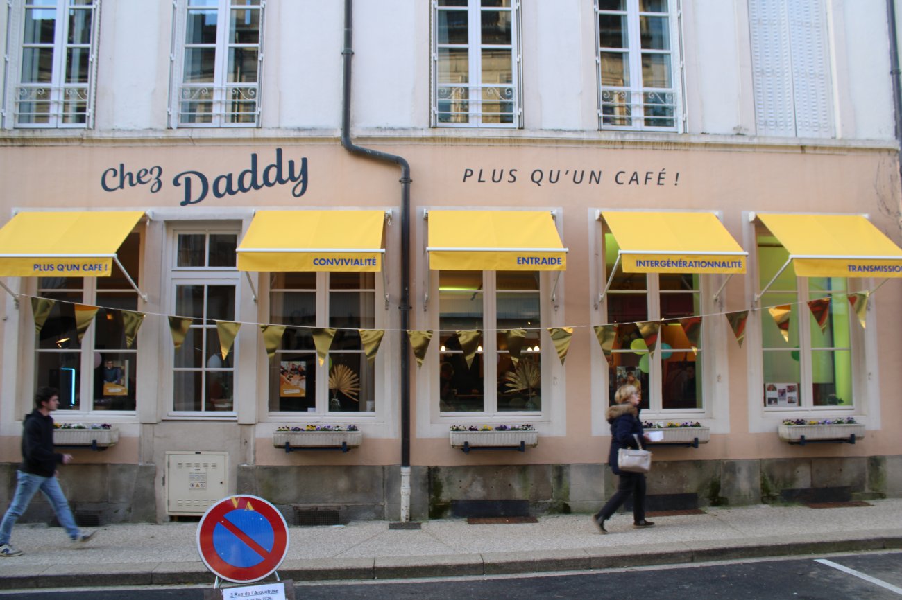 Au rez-de-chaussée de l'immeuble se trouve un café intergénérationnel Chez Daddy dans lequel tout est fait pour favoriser la rencontre et créer du lien (multiples activités, jeux de société, etc.). Le café fonctionne sur le principe du prix libre. Chacun se sert sa boisson et donne ce qu’il souhaite, selon ses moyens et son envie. Un modèle solidaire qui repose sur la confiance et la bienveillance, et pour profiter pleinement du lieu, une adhésion annuelle est proposée. Elle permet de venir aussi souvent que désiré et de participer aux nombreuses activités animées par des bénévoles. Des temps « apéro » seront organisés chaque jeudi de 18 h à 20 h. Au programme : bar, musique et ambiance festive pour décompresser après le travail.