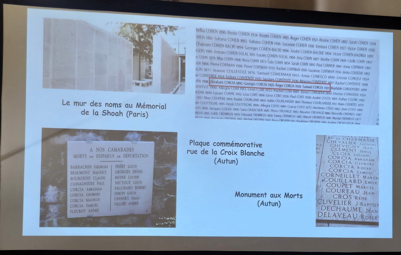Quatre pavés commémoratifs seront posés le 24 février 2027 devant le 9 rue Saint-Christophe à Autun, dernière adresse connue de la famille Corcia. Chaque pavé rendra hommage à l’un des membres de la famille décédés..