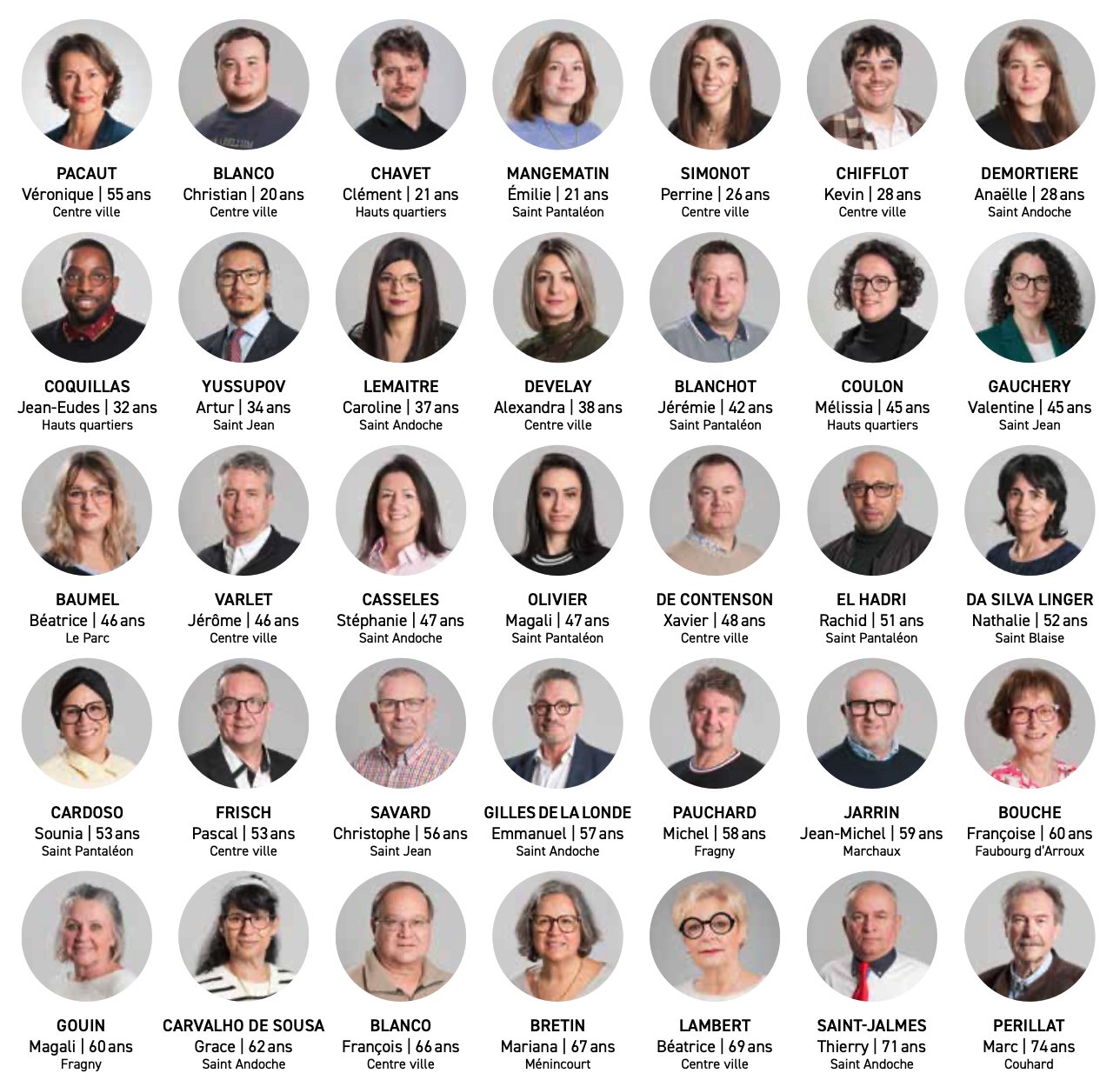 La liste de Véronique Pacaut réunit 35 candidates et candidats issus de tous les horizons de la vie autunoise : entreprises, professions de santé, enseignement, artisanat, commerce, associations, étudiants, secteur social, secteur hospitalier. Ce qui les unit n'est ni une appartenance partisane, ni une ambition personnelle, mais une conviction partagée : Autun a les ressources humaines pour se réinventer, à condition de les mobiliser ensemble.