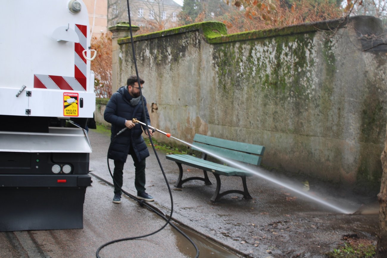 Enfin, un karcher haute pression est utilisé régulièrement pour nettoyer les trottoirs, les recoins et les zones où un lavage puissant est nécessaire. Cet outil complète les interventions quotidiennes menées par les agents municipaux.